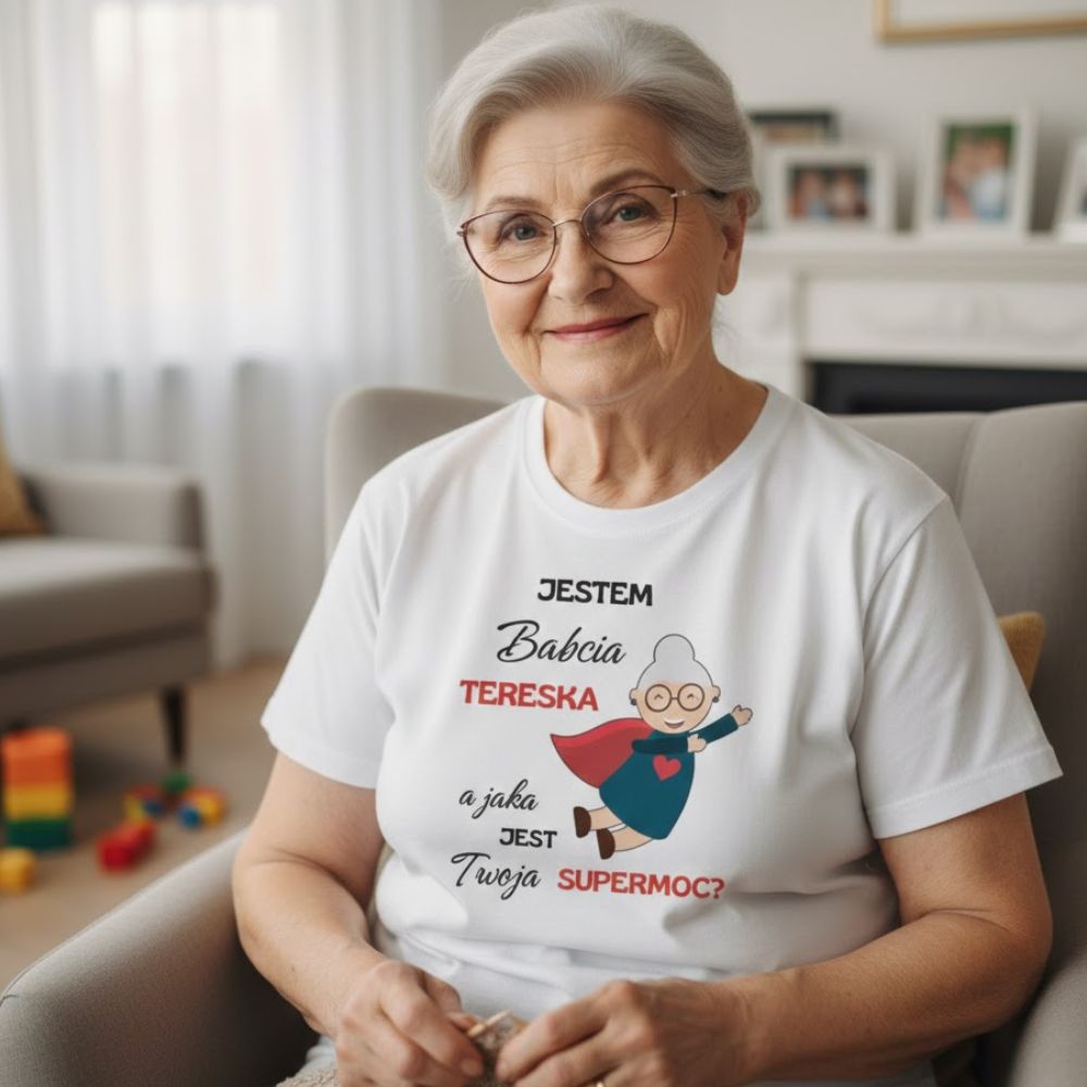Idealny prezent dla babci, która z dumą nosi swoją najważniejszą rolę i nie boi się pokazać swojej „supermocy”. Koszulka z możliwością personalizacji imieniem sprawia, że prezent staje się wyjątkowy i jedyny w swoim rodzaju. To świetny wybór na Dzień Babci, urodziny lub po prostu jako miły gest.