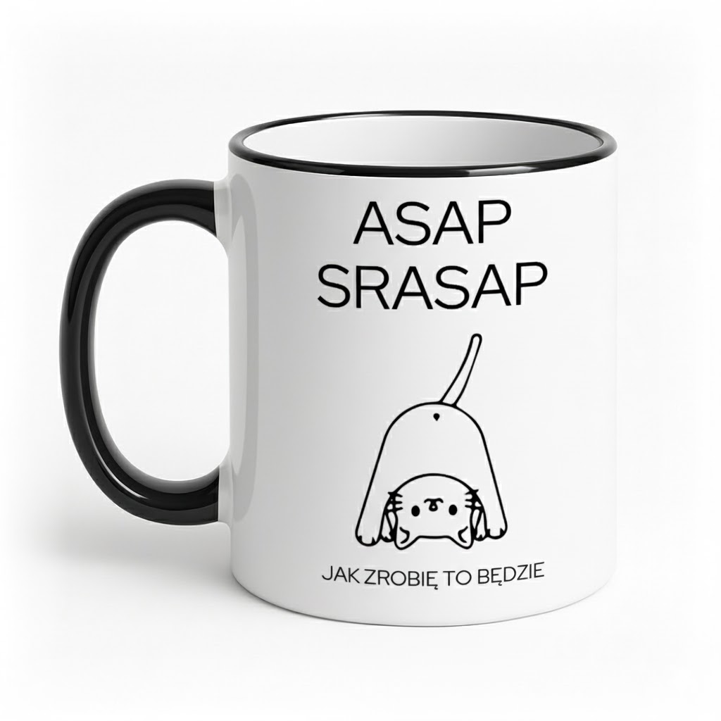 Kubek „Asap srasap” jest dla tych, którzy odkładają wszystko na później, ale robią to z pełną świadomością i dystansem do siebie. Idealny do porannej kawy w pracy lub domu — od razu ustawia klimat i wywołuje uśmiech. Świetny pomysł na prezent dla osób z poczuciem humoru i bez spiny.