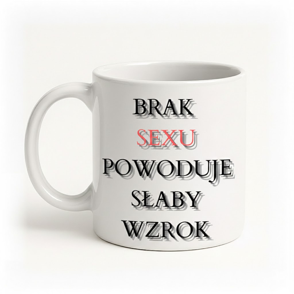 Ten kubek to żart z przymrużeniem oka, który bawi już samym niewyraźnym nadrukiem. Idealny dla osób z dystansem i poczuciem humoru – jako prezent dla partnera lub znajomego, który lubi odważne żarty.