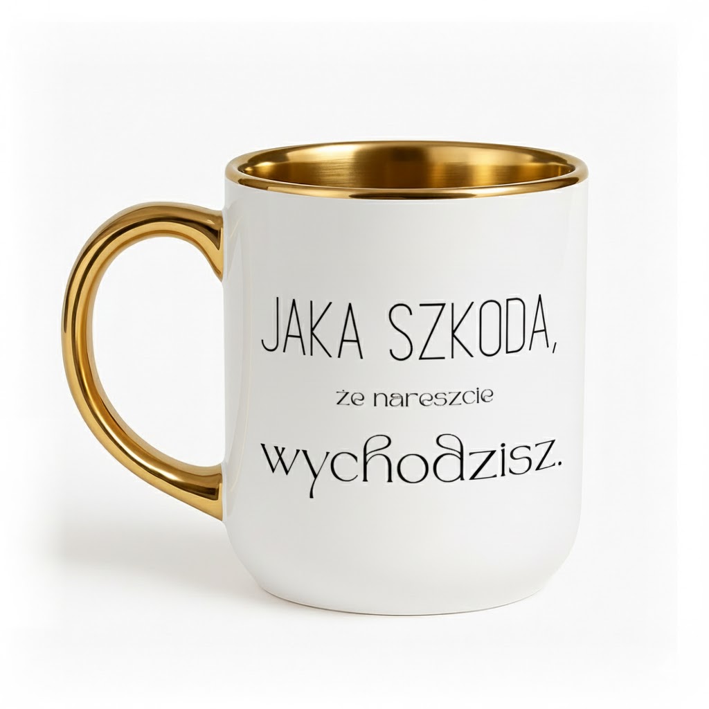 Kubek „Jaka szkoda” to idealny sposób, by subtelnie — albo wcale niesubtelnie — wyrazić ulgę, gdy ktoś wreszcie opuszcza pomieszczenie. Zabawny, lekko złośliwy i perfekcyjny dla osób o ciętym poczuciu humoru. Świetnie sprawdzi się jako prezent albo własny kubek na biurko, kiedy chcesz wysłać komunikat bez używania słów.