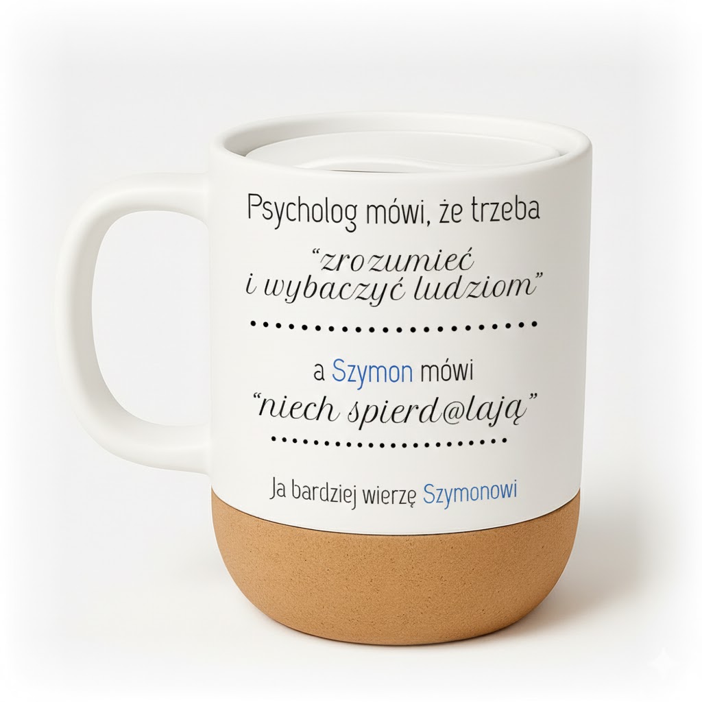 Kubek „Psycholog mówi, że trzeba zrozumieć i wybaczyć ludziom…” to idealny gadżet dla tych, którzy zamiast psychoanalizy wolą szczerość i śmiech. Zabawny, bezpośredni i z charakterem — świetnie oddaje podejście osób, które nie owijają w bawełnę. Doskonały na prezent dla przyjaciela, kolegi z pracy albo po prostu dla siebie, gdy masz dość „bycia miłym”.